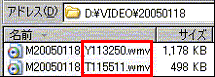 | 3) | ファイル表示 | 録画ファイルの閲覧をひんぱんに行う場合には、画像と並べてファイル一覧を表示しておくと便利です。 そのためには文字の大きさはそのままにして、一覧表の幅を狭くする必要があります。【ファイルの種類】などの表示を削除し、表示列の幅も事前に設定したものが、下記により新表示される全ての一覧表に自動設定できます。 ただし、以下の設定は Win XP で、Win 2000 は【表示】⇒【列の設定】 となります。 Win me,98 ではこのようなきめ細かな設定はできないようです。